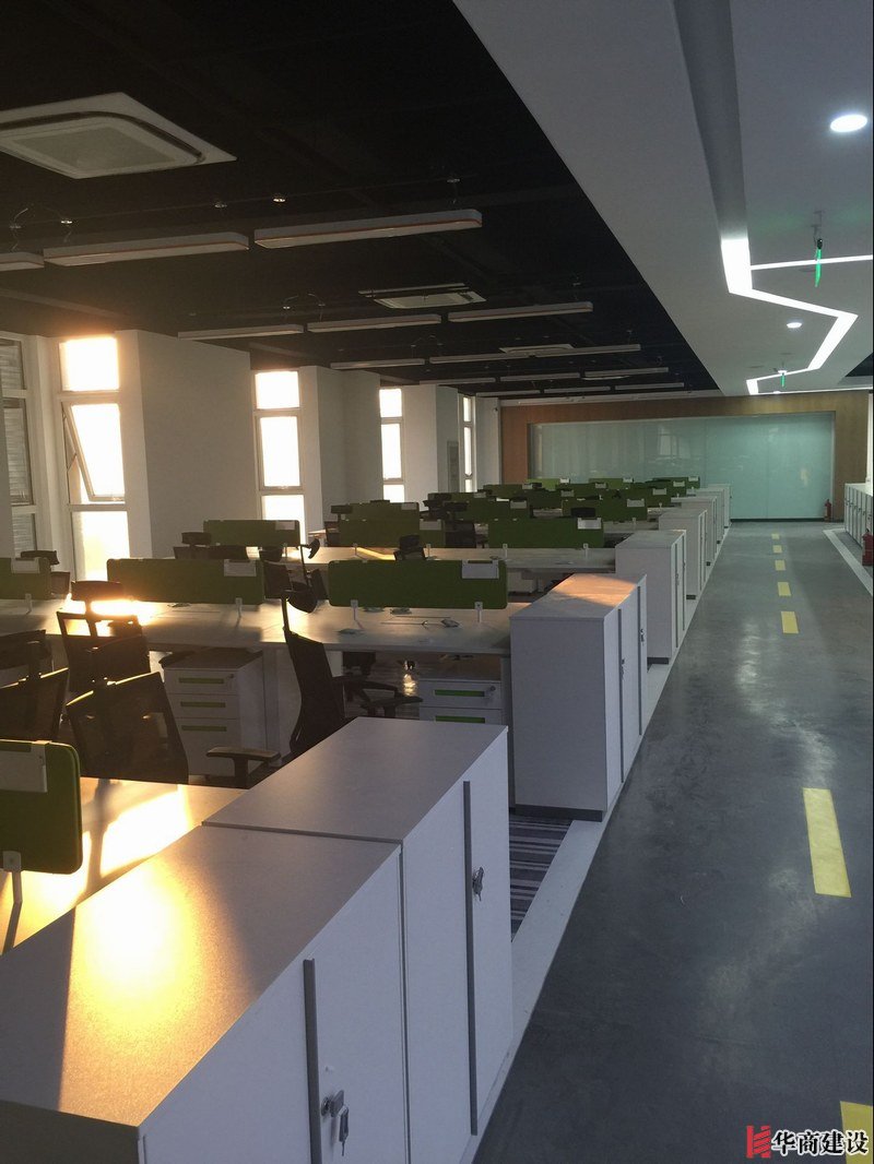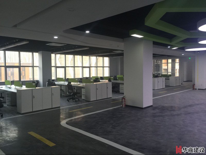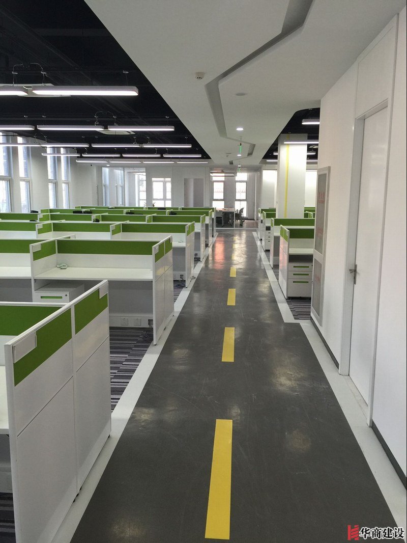 項目主要用材:裸頂噴漆、玻璃隔斷、地面地膠、局部石膏板造型吊頂、草坪乳膠漆箭頭造型