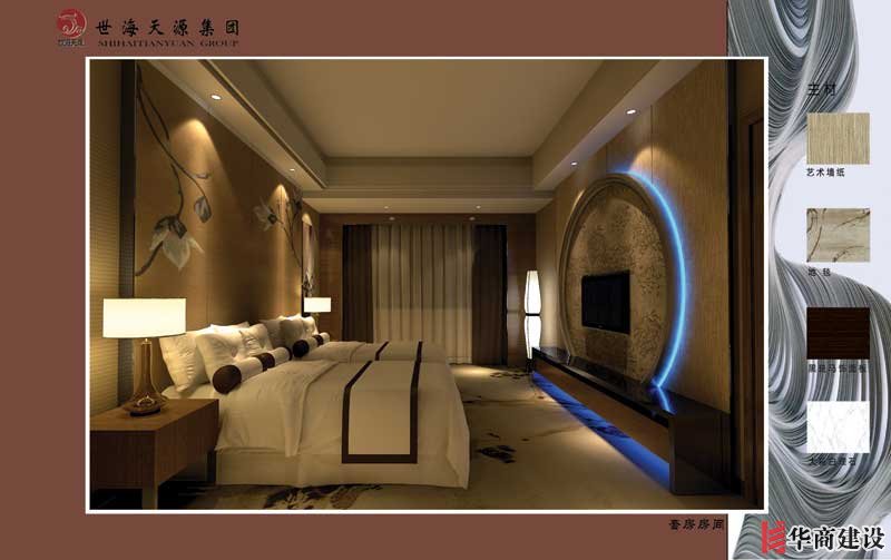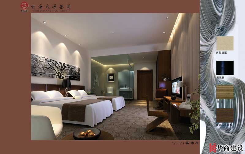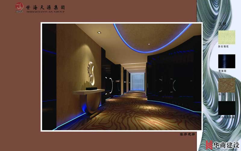 結(jié)合空間的藝術特點,設計師特別注重了材質(zhì)的搭配和對比,光滑與粗糙、黑與白,相互的撞擊著,強化了空間的質(zhì)感,并豐富著視覺的層次。大堂以紋路豐富的路易斯金為主材,光潔明亮的墻面和天然粗礪的服務臺形成強烈的對比,營造出自然、淳樸、溫暖的氛圍,獨具匠心的大堂吊燈,充滿了童心稚趣,也有大珠小珠落玉盤之勢,非常引人注目。除此之外,在軟裝和家私擺設上也經(jīng)過深思熟慮的考究,在進入電梯間的入口處的藝術水景更是增添了更多的藝術成分,創(chuàng)造出優(yōu)雅、閑適的氣質(zhì)。客房空間以大花白石材、黑鏡鋼和黑玻及藝術墻紙為主材,把空間營造出層次豐富、質(zhì)感十足。