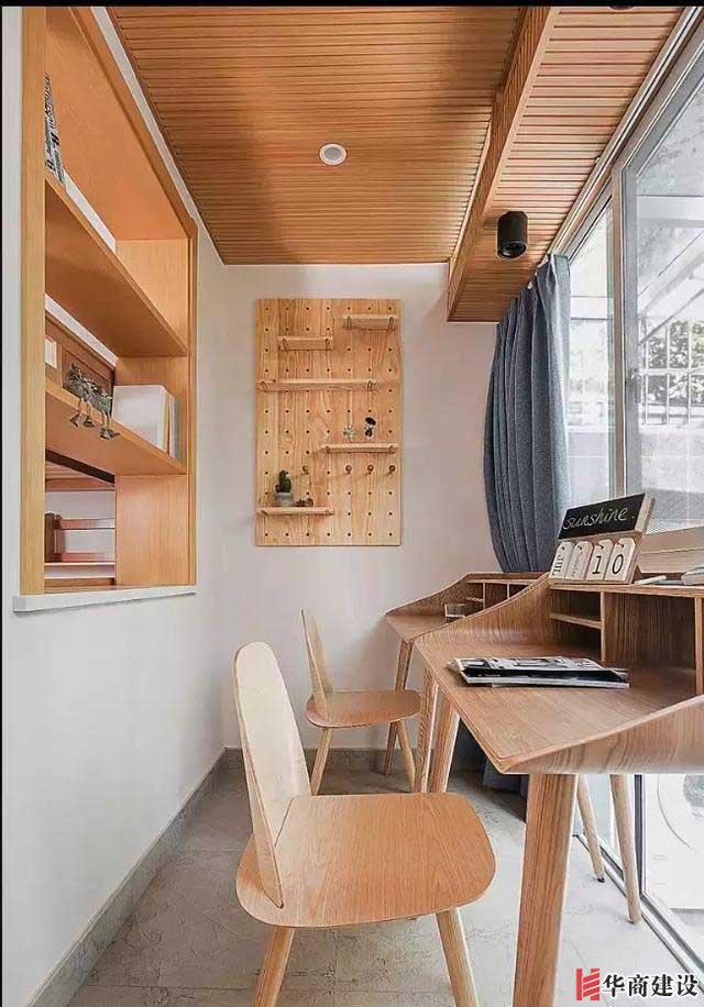 第四種:通透陽臺+學(xué)習(xí)空間。這個一般需要家里有兩個陽臺。一個生活陽臺,一個臥室自帶的陽臺,可以單獨(dú)作為學(xué)習(xí)空間使用,如果是兒童房帶陽臺再好不過,可以有單獨(dú)的學(xué)習(xí)空間了,完全可以是一間完整的書房了。