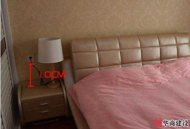 3、臥室床頭開關(guān)插座同高,高度在床頭柜上方10cm左右。