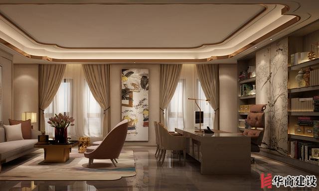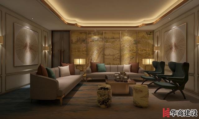 這個(gè)是董事長(zhǎng)會(huì)客室,這個(gè)部分的設(shè)計(jì)跟辦公室的設(shè)計(jì)采用的就是兩種不同的設(shè)計(jì)風(fēng)格,會(huì)客室的設(shè)計(jì)更加的莊重、正式,墻壁上掛著清明上河圖的壁畫,這不僅體現(xiàn)了老板的文學(xué)素養(yǎng),而且也使整個(gè)空間熠熠生輝!